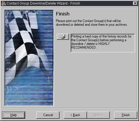 To delete a Contact Group, choose the “Delete” option while in the “Contact GroupDownline/Delete Wizard” window. When you do this, you’ll be presented with the only available setting for that option: